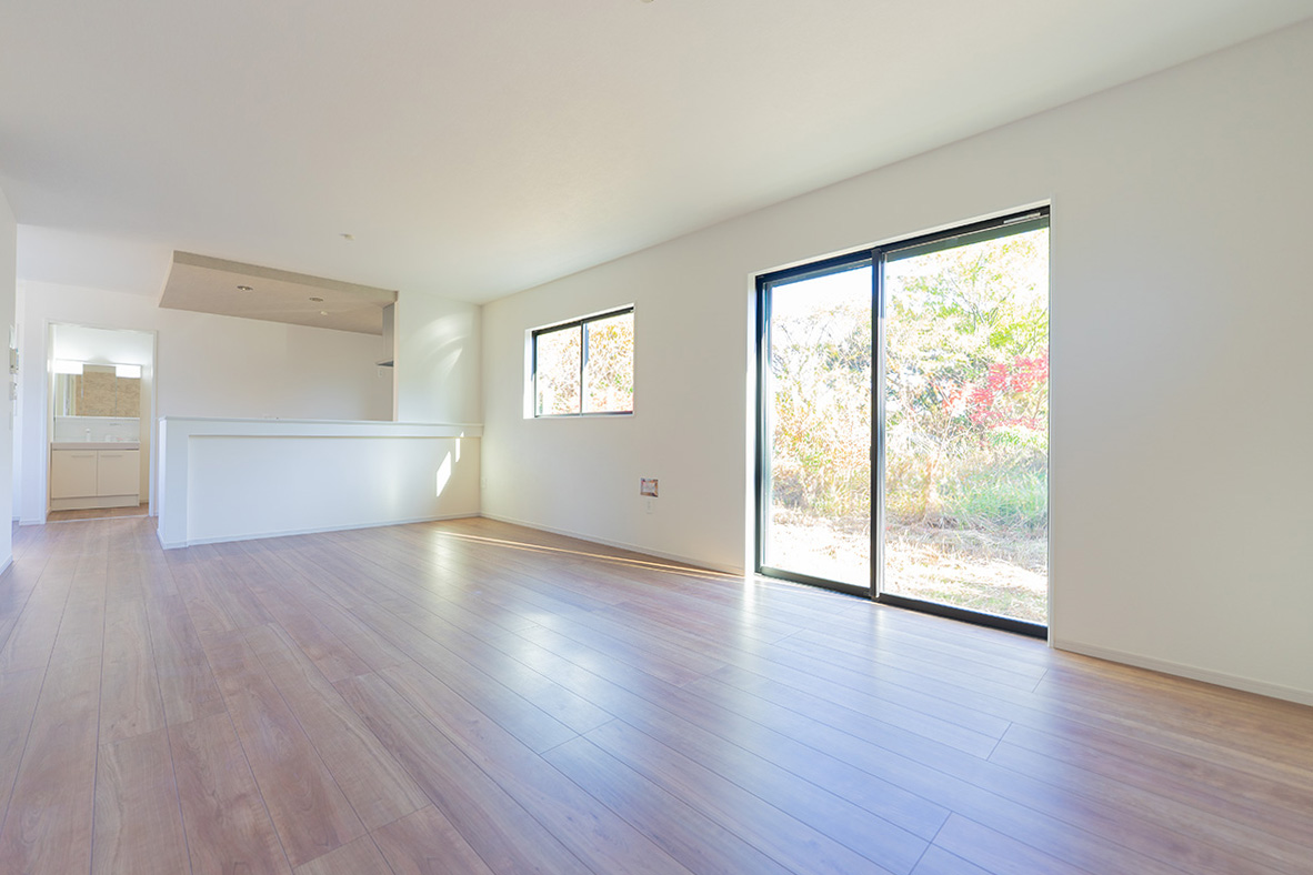 一歩足を踏み入れると、その明るさに驚くはずです。ピュアホワイトの壁紙が南からの自然光を柔らかく反射し、部屋全体を優しく包み込みます。足元には温もりを感じる明るい木目調のフローリング。どんなインテリアも美しく映える、シンプルでありながら計算し尽くされた空間です。
