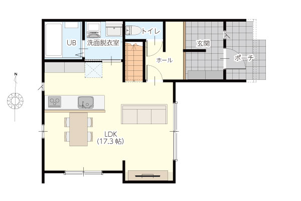 食事スペースとくつろぎスペース、生活シーンの切り替えがしやすい間取りです。