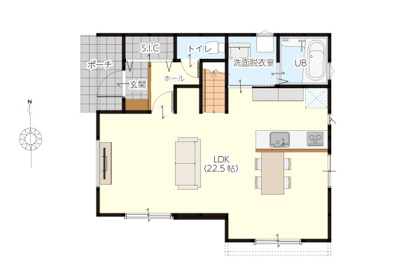 約22帖の広々としたLDK。