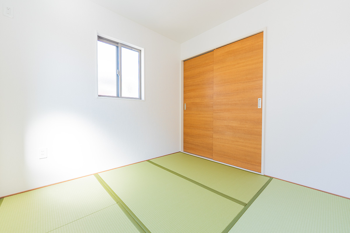 リビングとフラットに繋がる和室は、縁のない半畳タタミを採用したモダンな装い。引き戸を開け放てばLDKと一体化し、約23帖の大空間としてホームパーティにも対応できます。 洗濯物を畳むスペースとして、小さなお子様の遊び場として、あるいは両親が泊まりに来た時の客間として。ライフステージに合わせて姿を変える、日本人の知恵が詰まったフレキシブルな一室です。