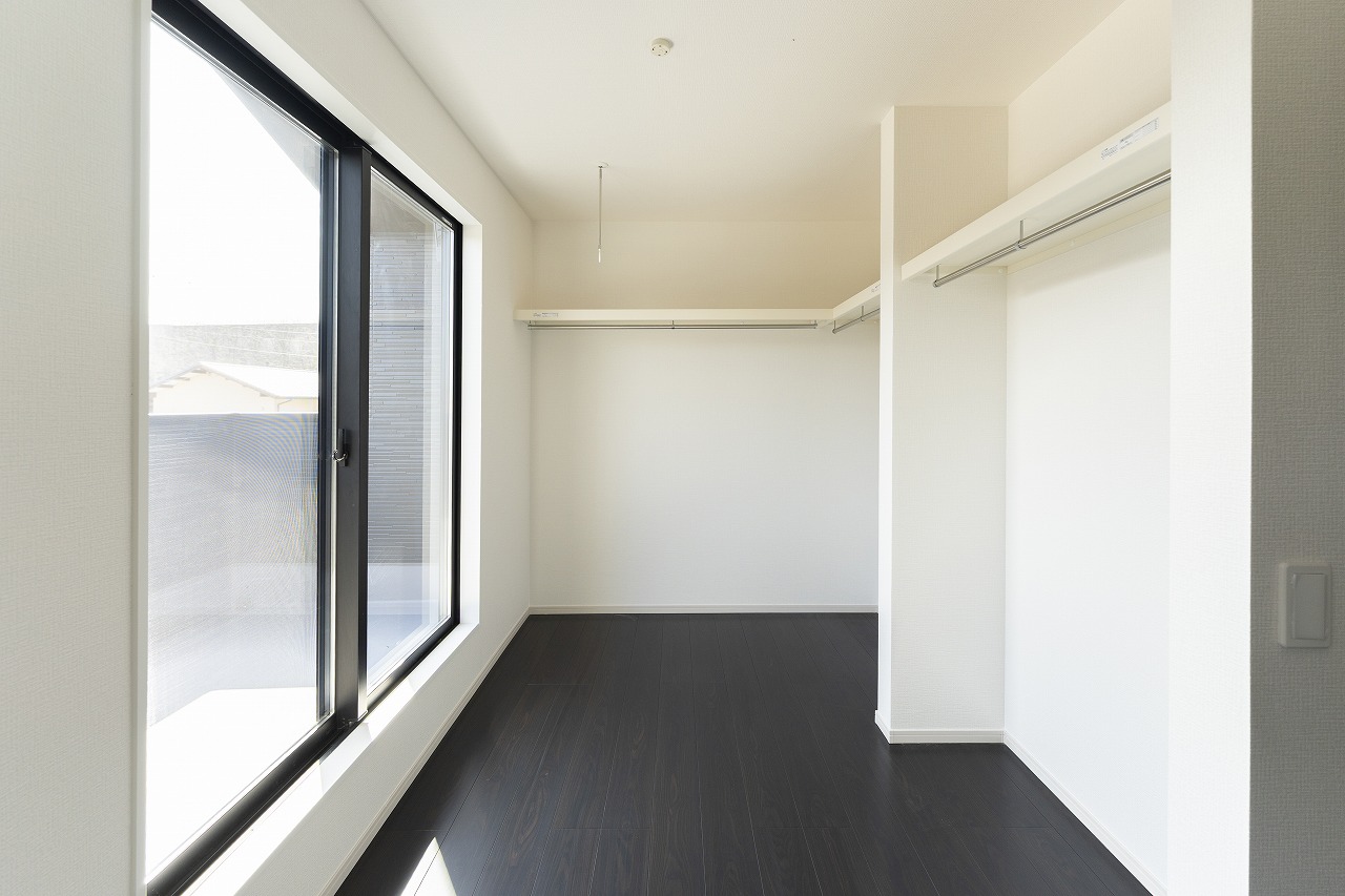 最も日当たりの良い2階の南側。そこは最高の「サンルーム」であり、家族全員の衣類が集まる「ファミリークローク」でもあります。たっぷりの陽光で乾かした洗濯物を、そのままハンガーごと隣のパイプに掛けるだけ。各部屋へ衣類を配って回るあの面倒な時間は、もう過去のものです。