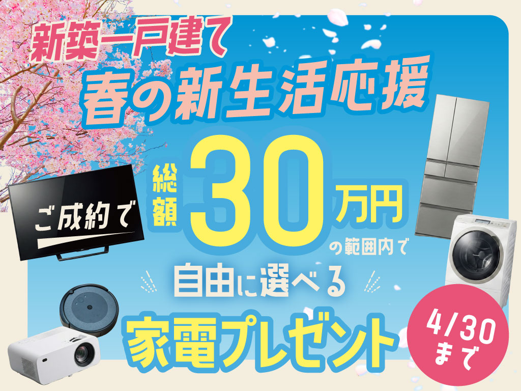 本物件限定で、令和8年4月末までにご成約いただいた方へ、提携のベスト電器でお好きな家電をプレゼントします。