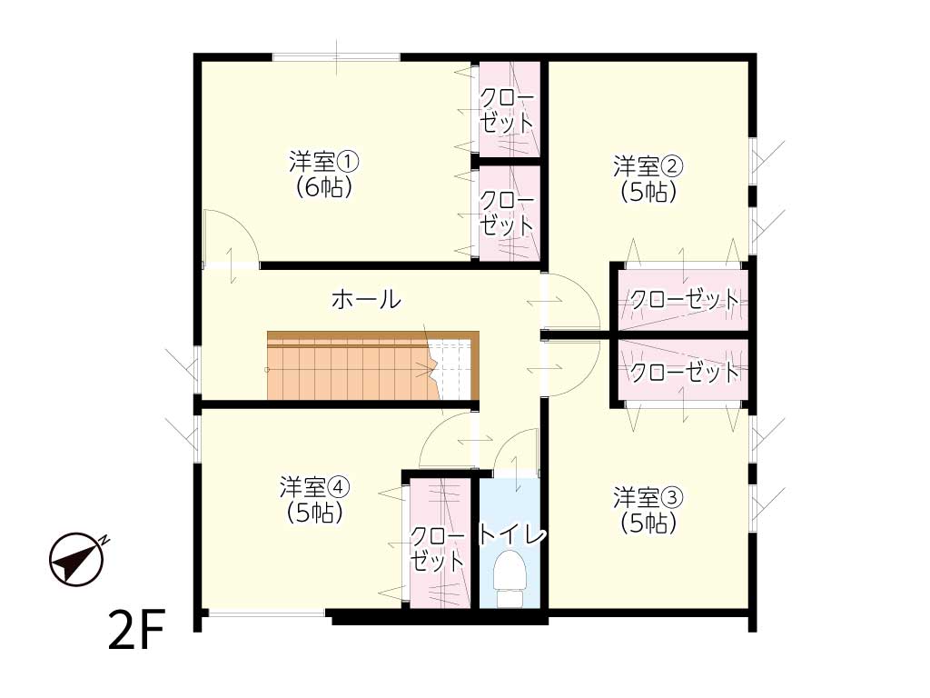 全ての居室に独立したクローゼットを設けることで、限られたスペースながら家族一人ひとりが自分の空間をしっかり管理し、整頓された暮らしを実現