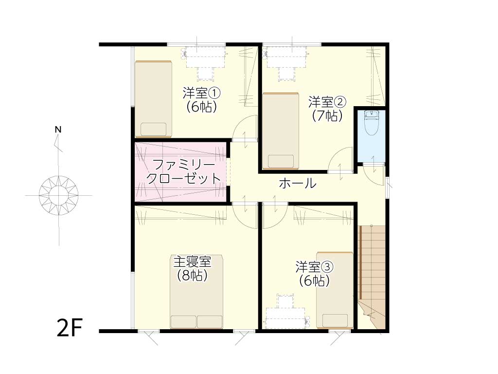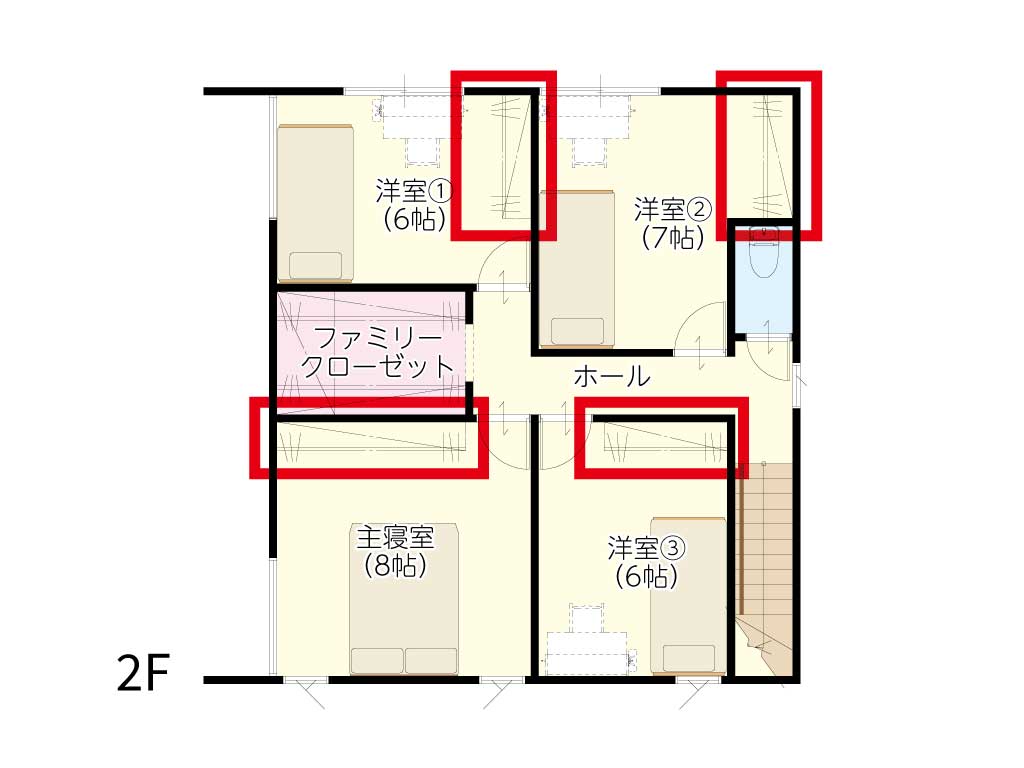 主寝室+洋室3部屋。すべてのお部屋に収納完備。