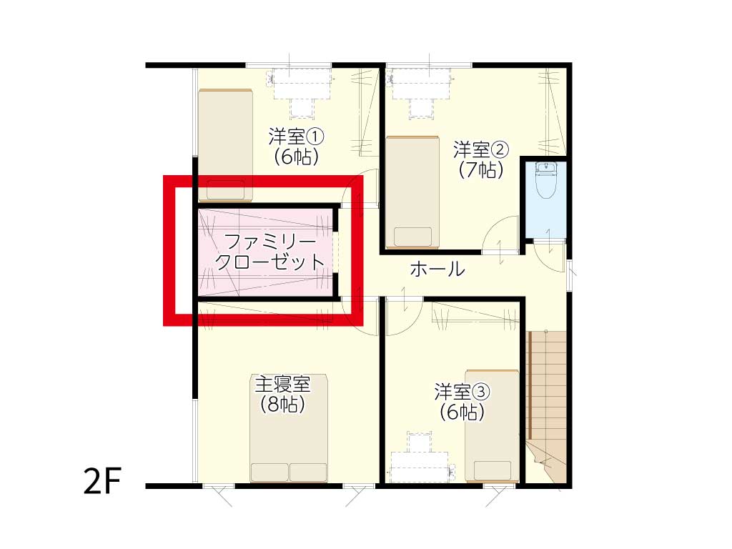 廊下から直接出入りできる、大容量のファミリークローゼット。