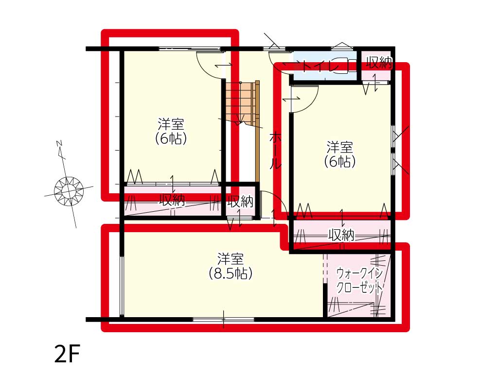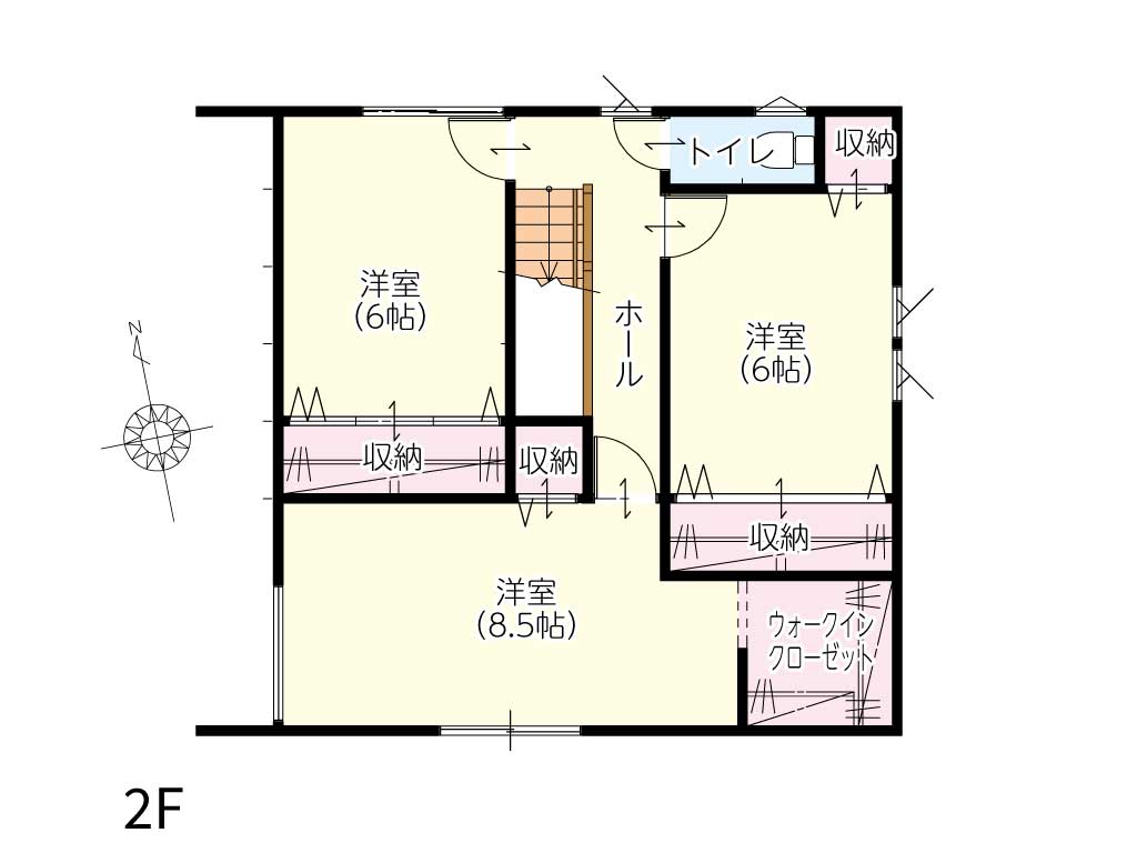 「子どもが大きくなったら手狭になるかも」という不安に寄り添った設計です。全居室が6帖以上、主寝室は8.5帖。どの部屋も主役級の広さがあるから、家族の形が変わってもずっと快適です。