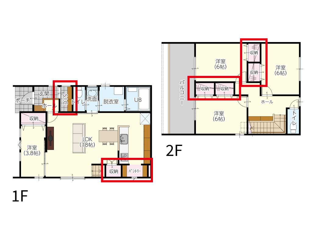 玄関のS.I.C、キッチン横のパントリー、リビング収納、そして2階の各室クローゼット。必要な場所に収納があるから、賃貸時代の「片付けストレス」が劇的に減り、家族の時間が増えます。