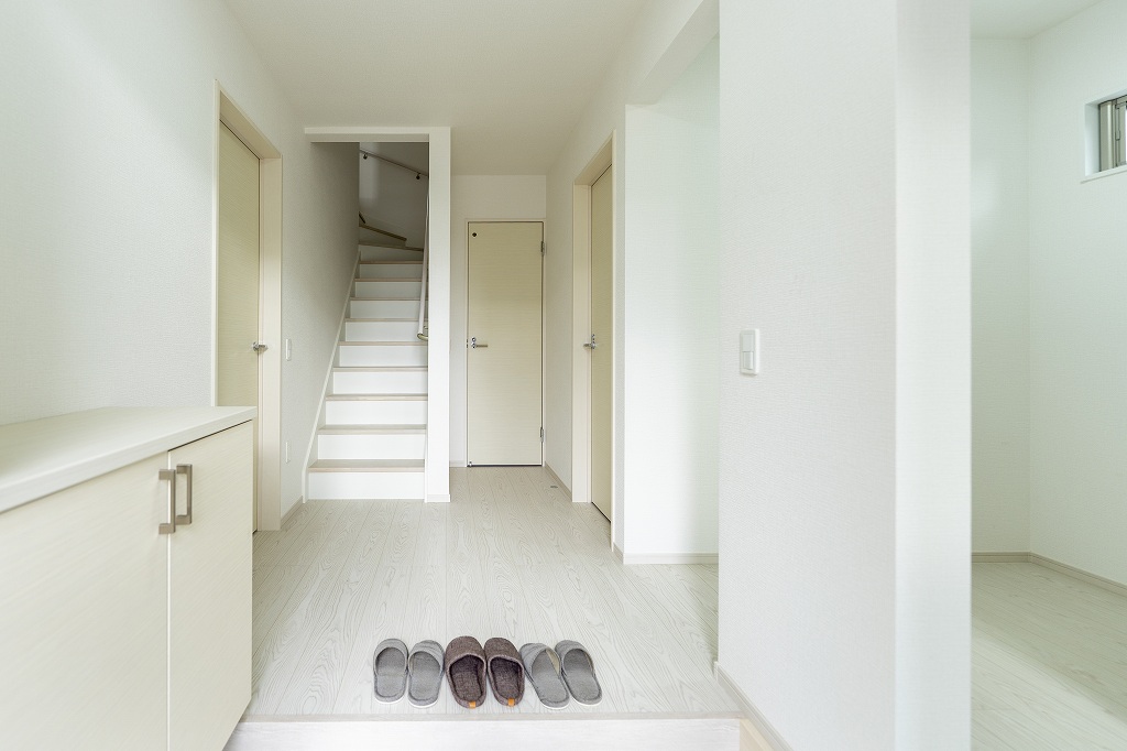 リビングが散らかる原因は「帰宅後のコートやバッグの置き場がないこと」でした。そこで、LDKに入る手前のホールに専用クロークを設置。上着を脱ぎ、鞄を置き、身軽になってからリビングへ。花粉やウイルスを居住スペースに持ち込まない、家族の健康と整理整頓を同時に叶える賢い収納です。