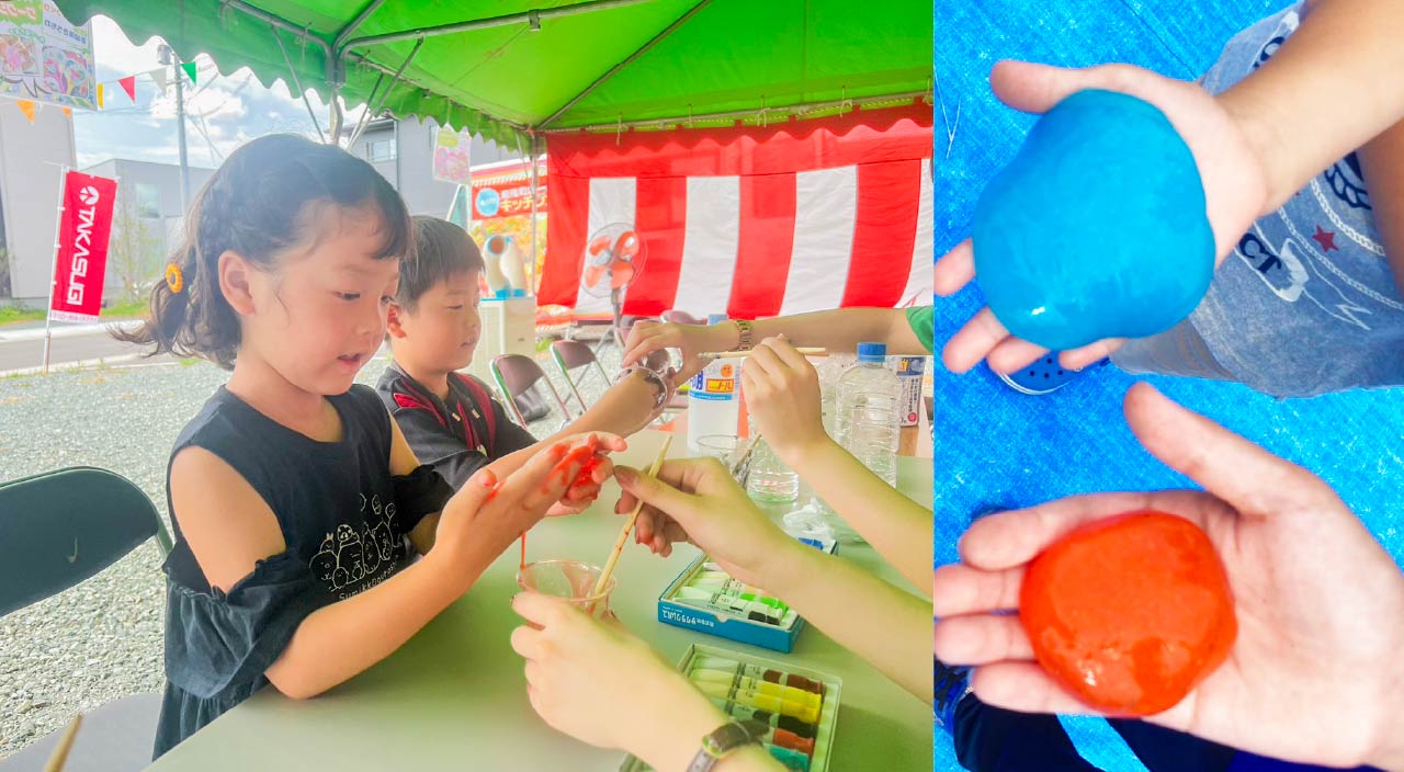 好きな色を混ぜ合わせて、世界に一つだけの「ぷるぷる・もちもち」を完成させよう。完成したスライムは、もちろんお持ち帰りOK。お家に帰っても楽しく遊べます!